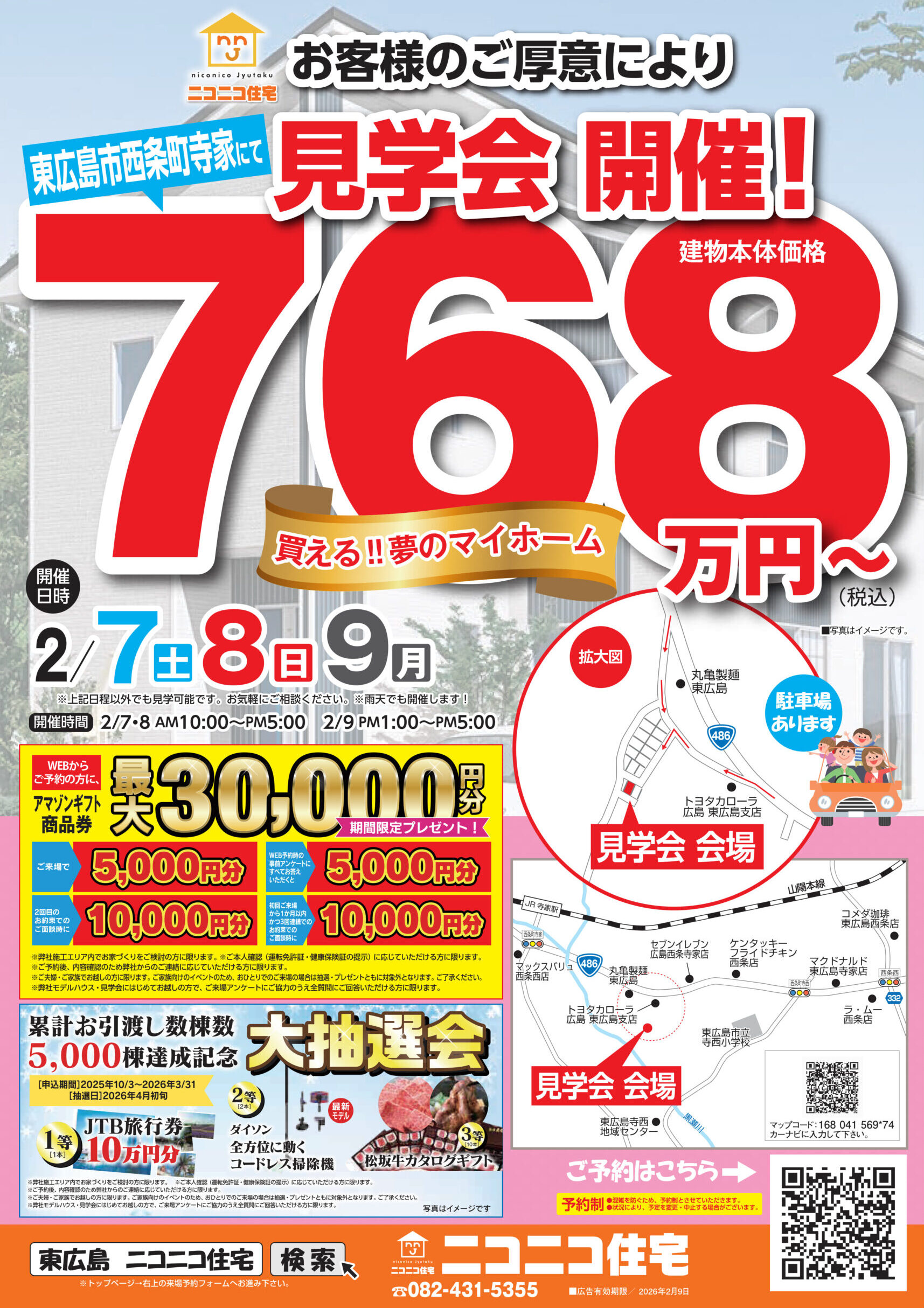 ニコニコ住宅では、完成した住宅を期間限定のモデルハウスとして見学会を開催しております。
