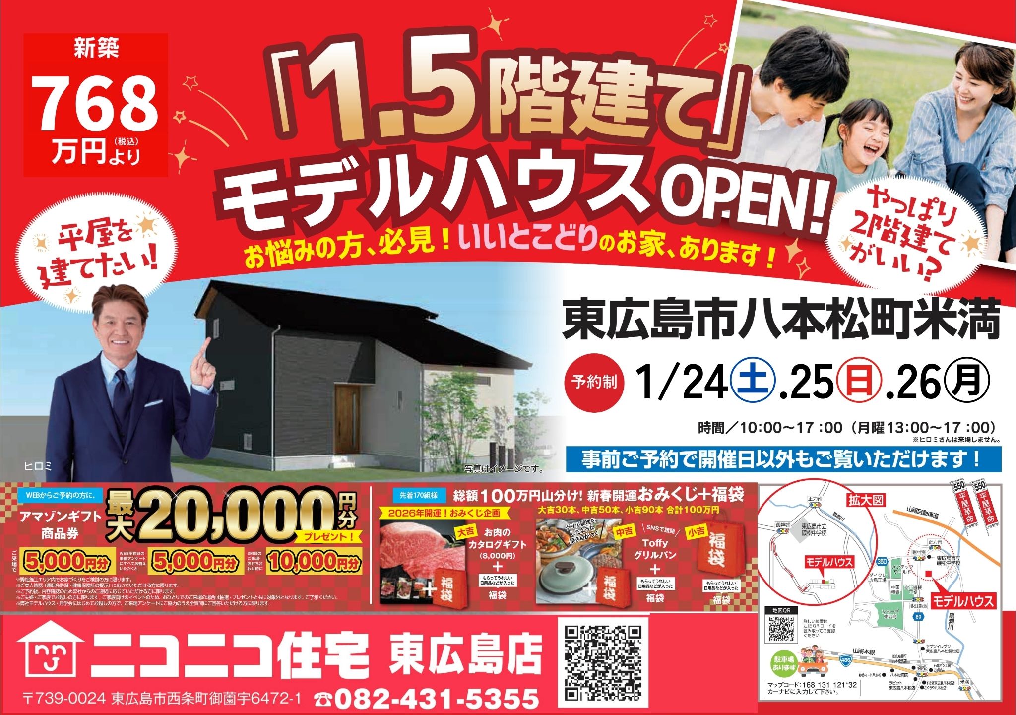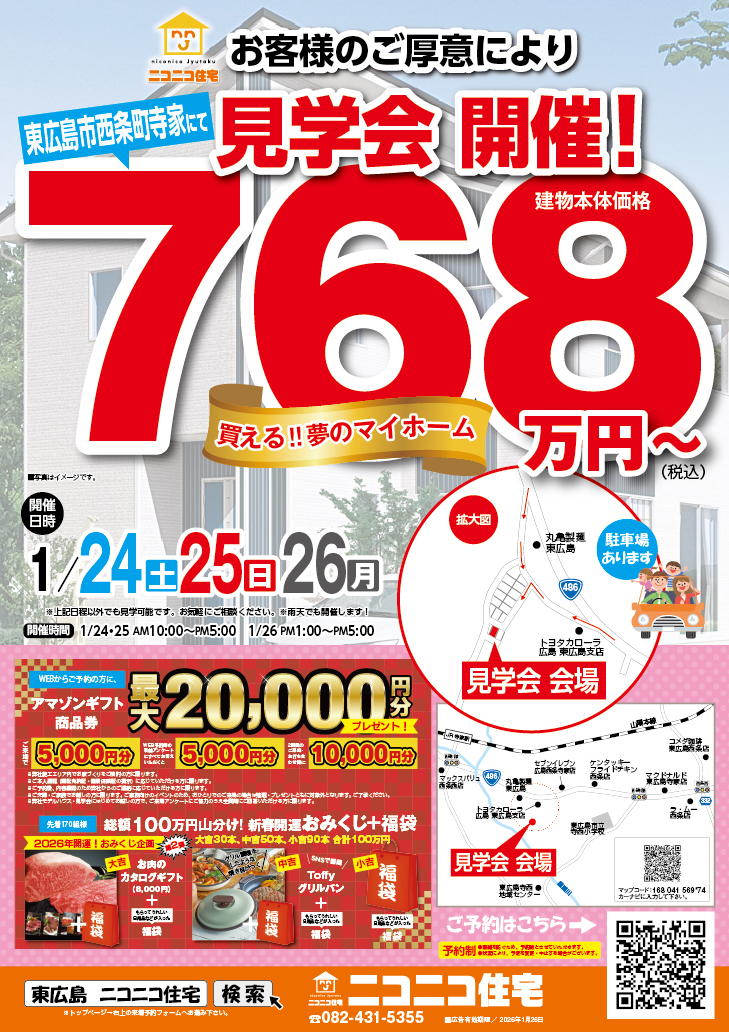 ニコニコ住宅では、完成した住宅を期間限定のモデルハウスとして見学会を開催しております。