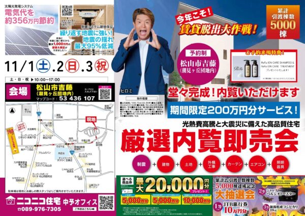 【松山市吉藤(潮見ヶ丘団地内)】モデルハウス内覧即売会を開催!(11/1~3)