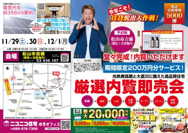 【松山市吉藤(潮見ヶ丘団地内)】モデルハウス内覧即売会を開催!(11/29~12/1)