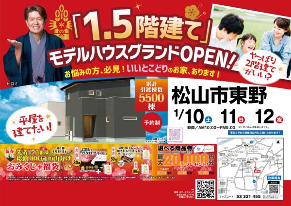 New!【松山市東野】「1.5階建て」新モデルハウスグランドOPEN!(1/10~12)※松山本店