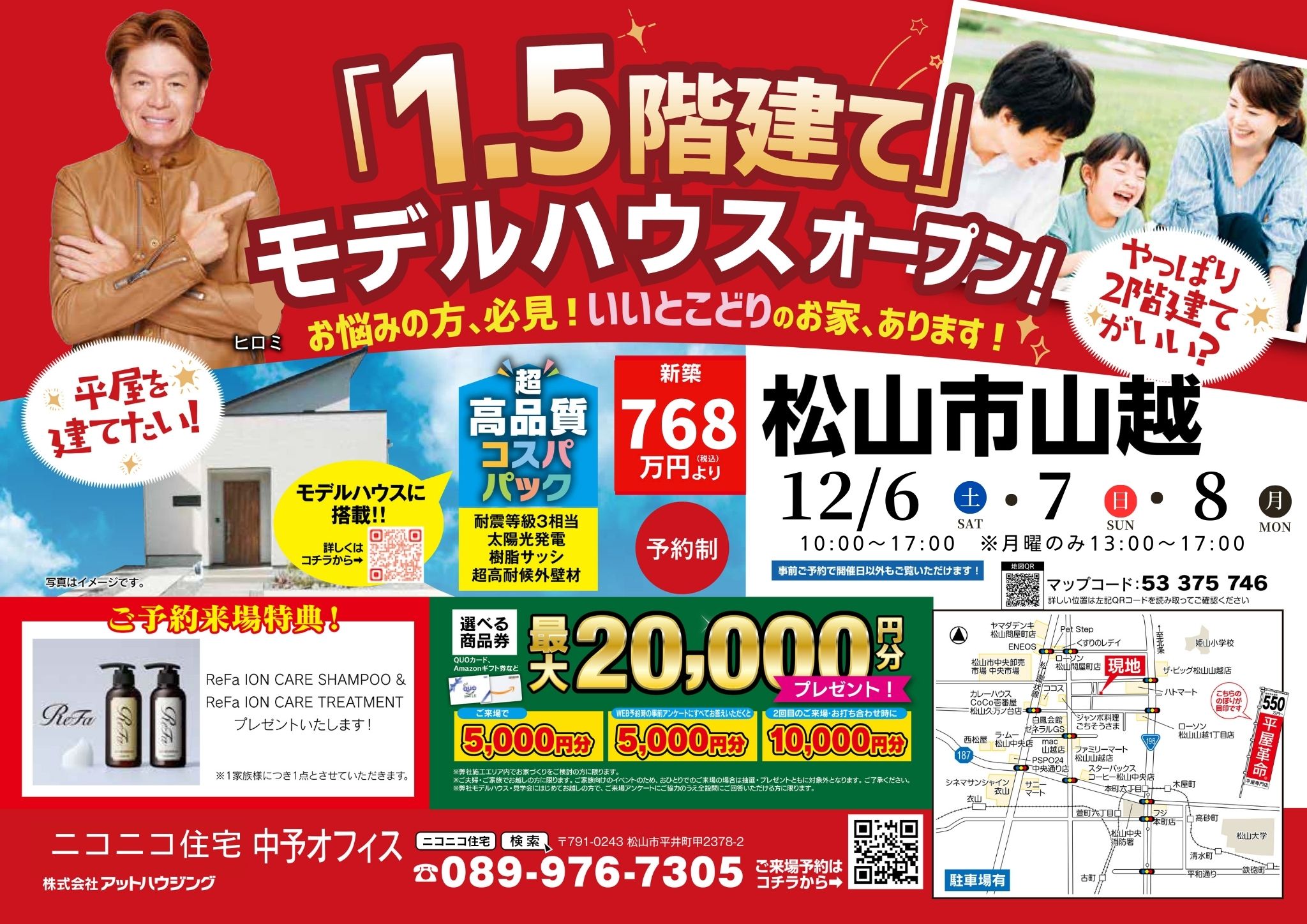 【松山市山越】「1.5階建て」モデルハウスオープン!(12/6~8)※中予オフィス