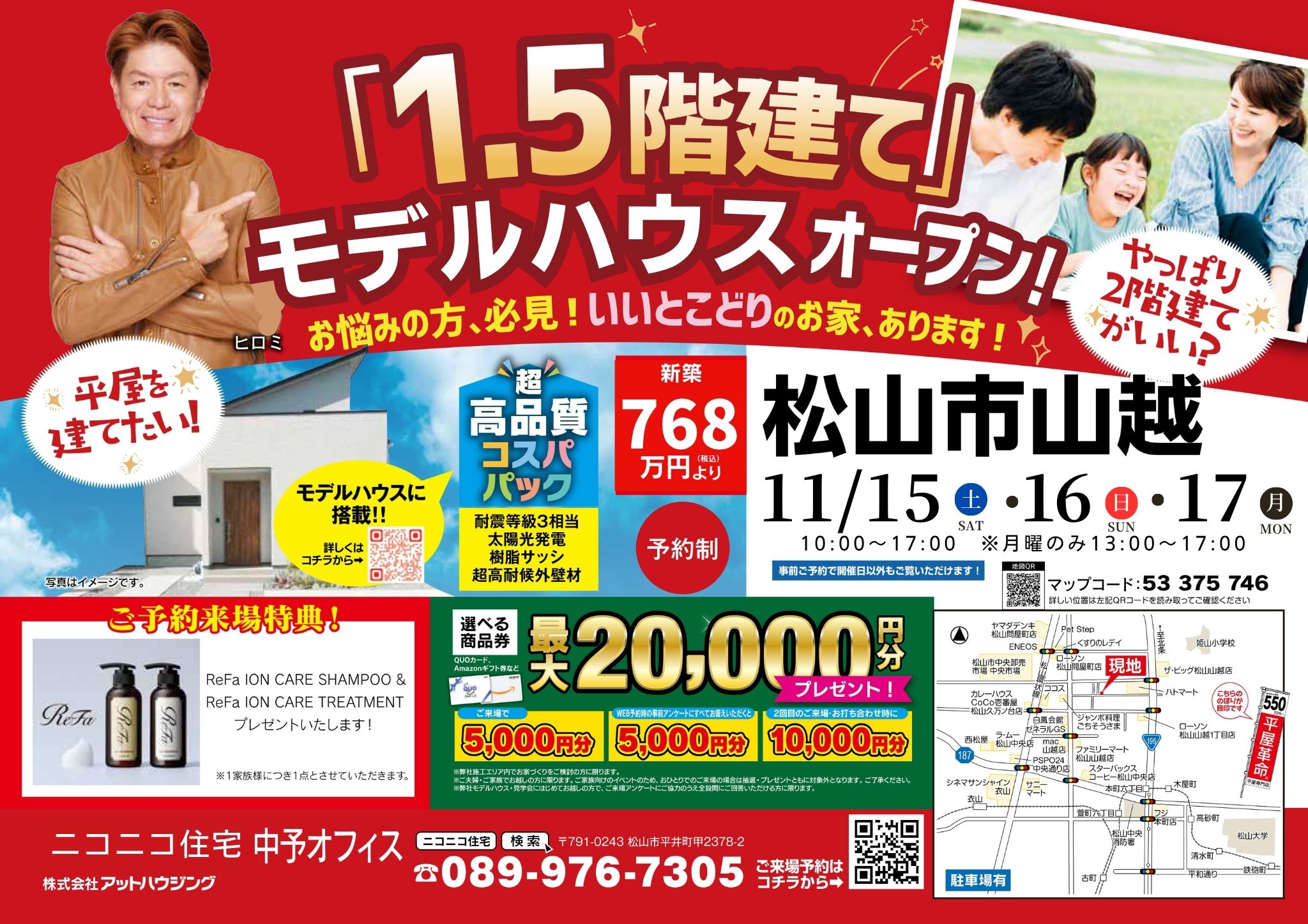 【松山市山越】「1.5階建て」モデルハウスオープン!