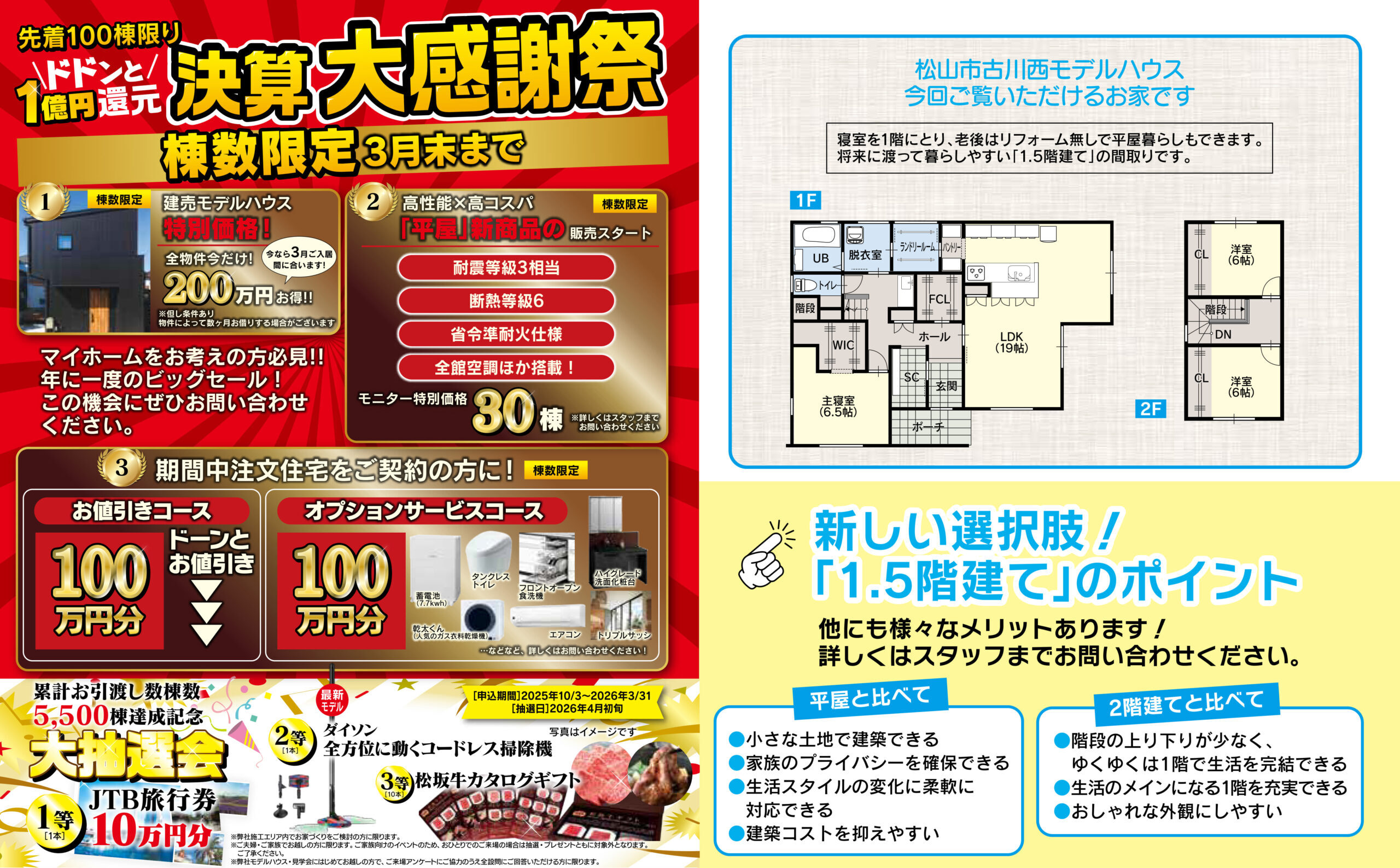 ※最終開催!【松山市古川西】「1.5階建て」モデルハウスOPEN!(2/21~23)※松山本店