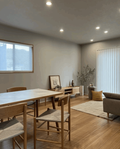 ✅モデルハウスだけの特別仕様 グレーを基調としたトレンド感のある内装、全居室エアコン(5台)、照明器具、カーテン、さらには外構工事や家具までトータルコーディネート。そのまま住み始められる豪華装備です。