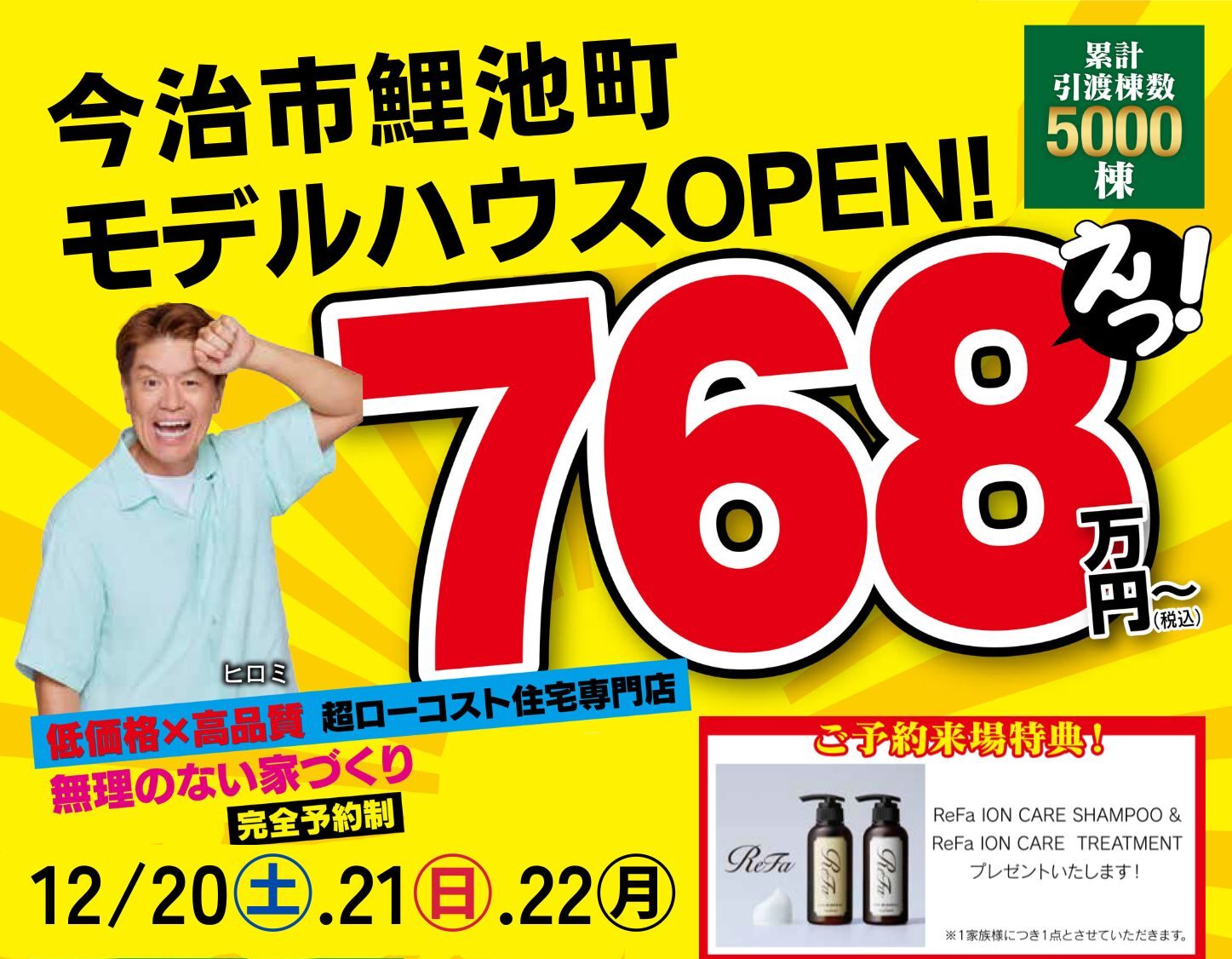 【今治市鯉池町】モデルハウスOPEN!(12/20~22)