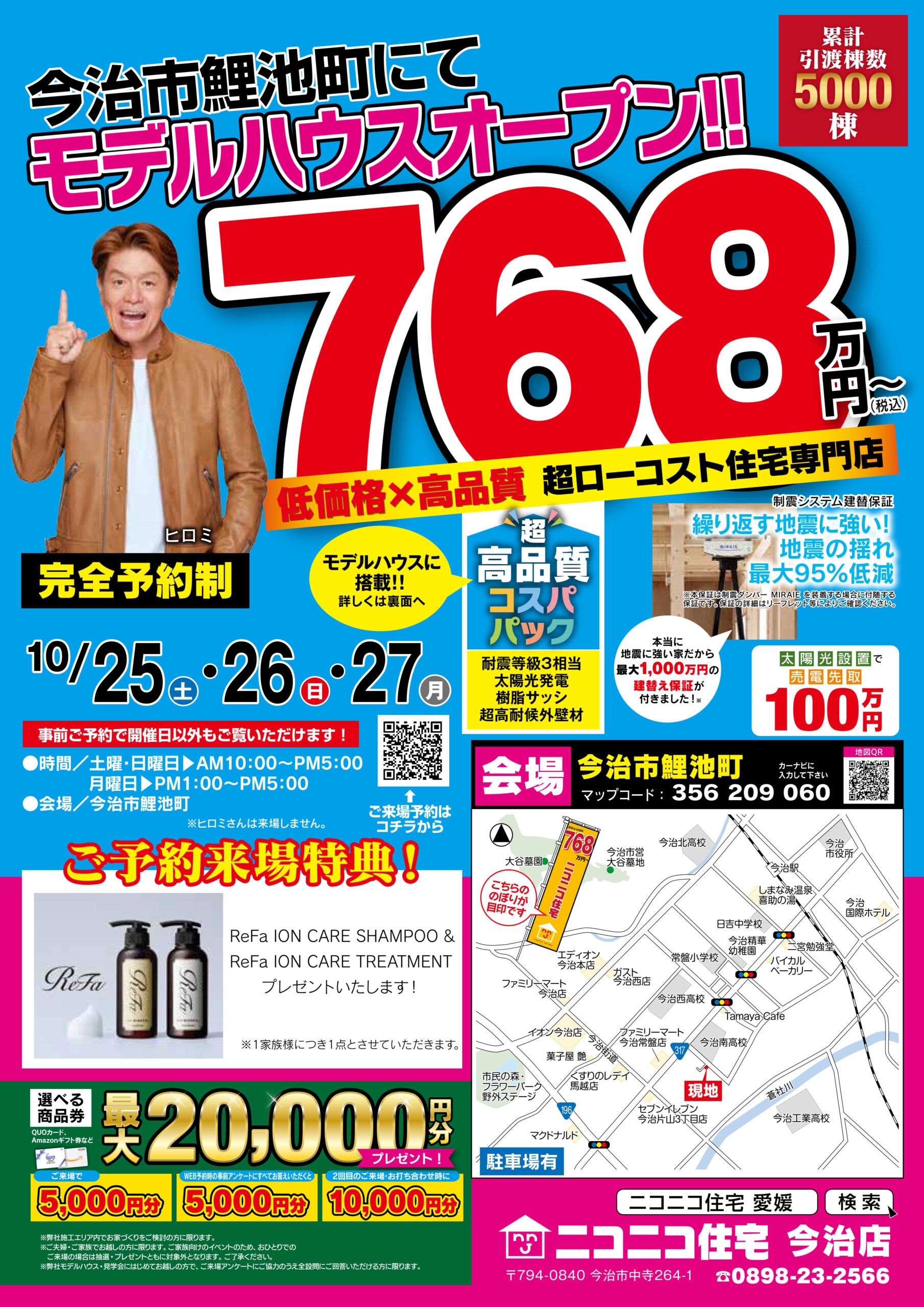 【今治市鯉池町】モデルハウスOPEN!(10/25~27)