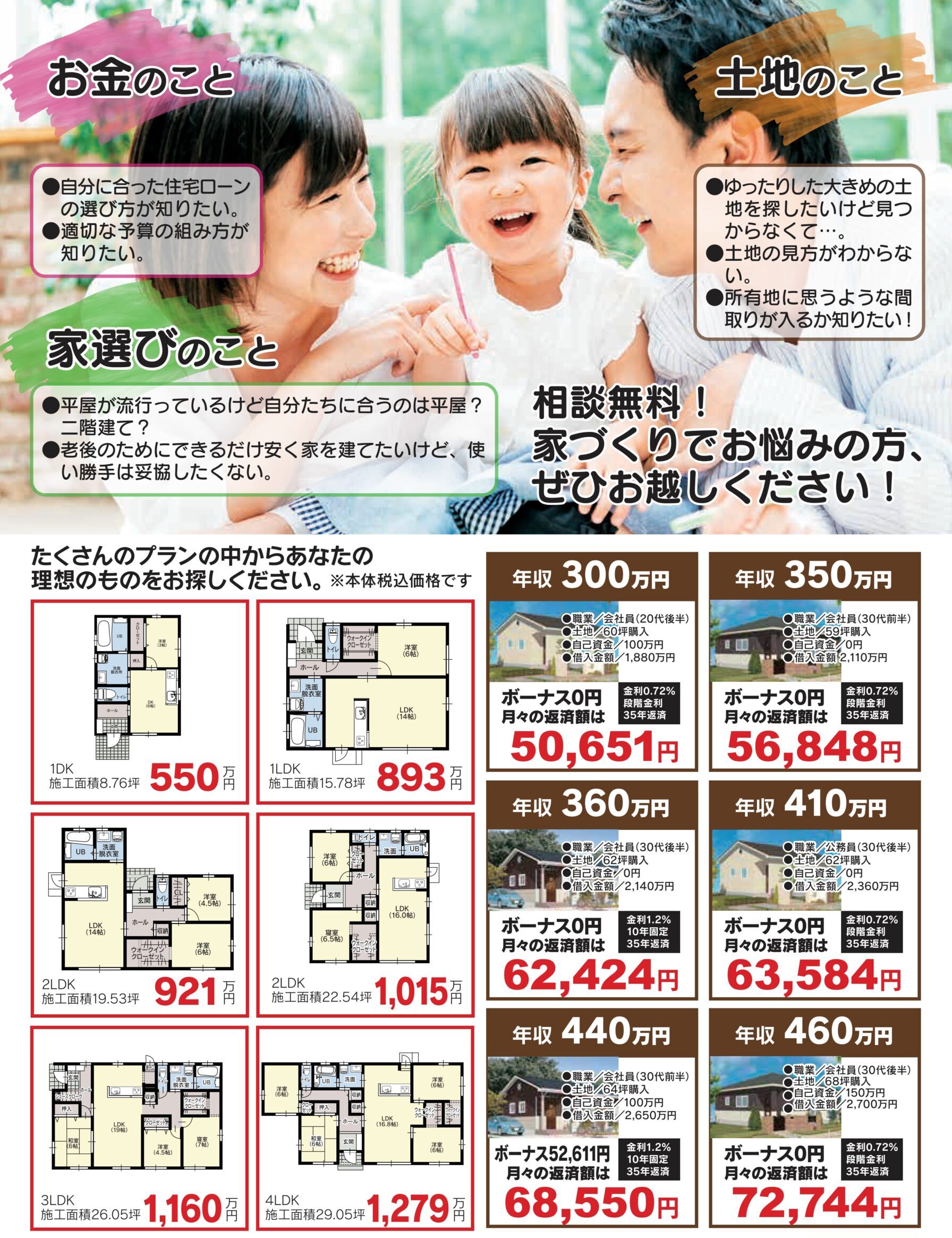 お家づくりで気になること、なんでもご相談ください!