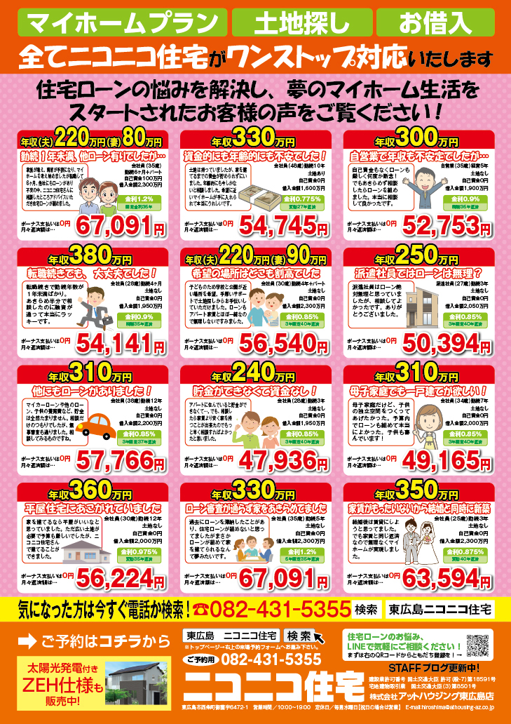 愛媛・東広島で新築戸建・注文住宅・中古住宅・建売をお考えならローコスト専門店ニコニコ住宅