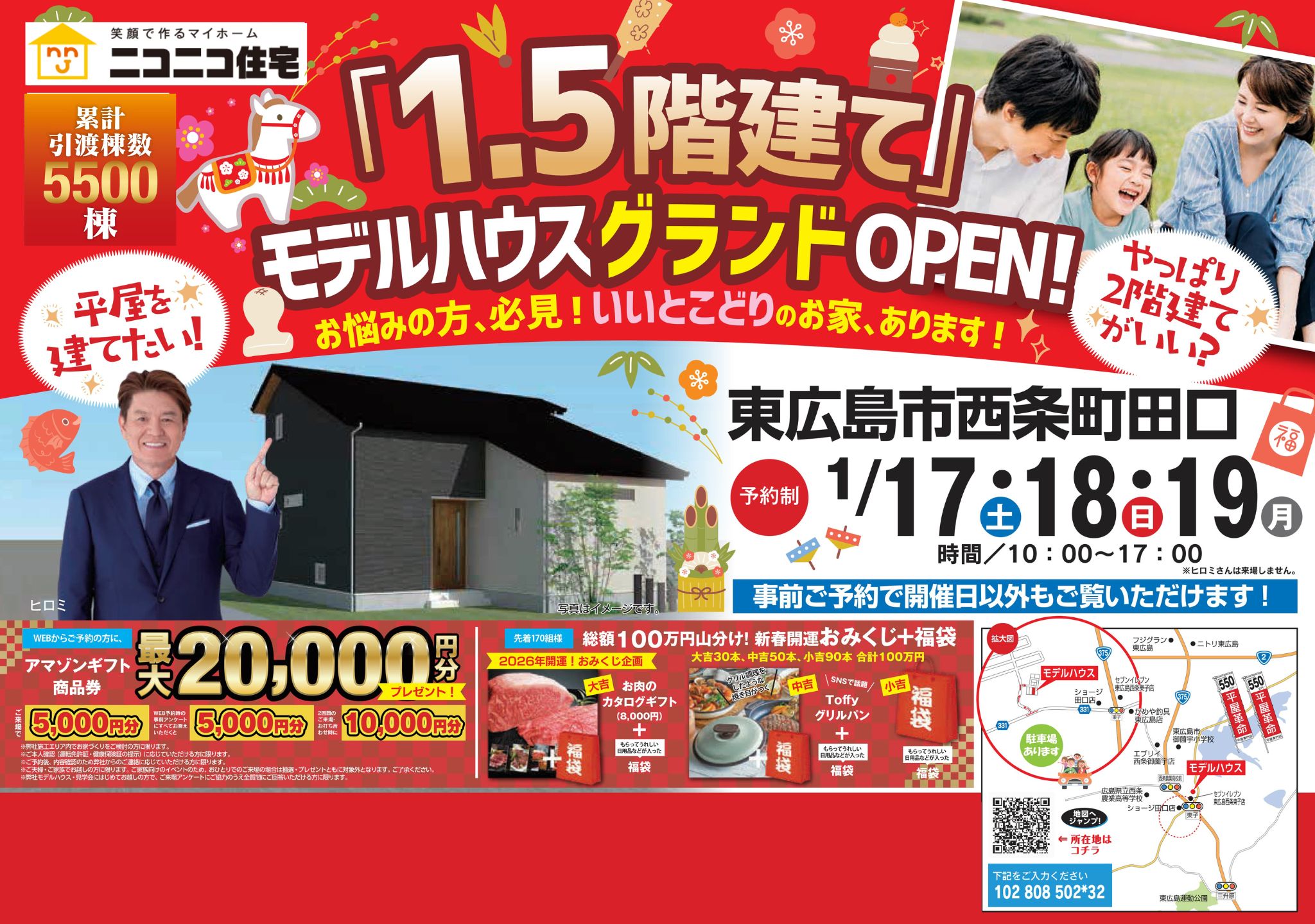 【東広島市西条町田口】「1.5階建て」新モデルハウスグランドOPEN!(1/17~19)