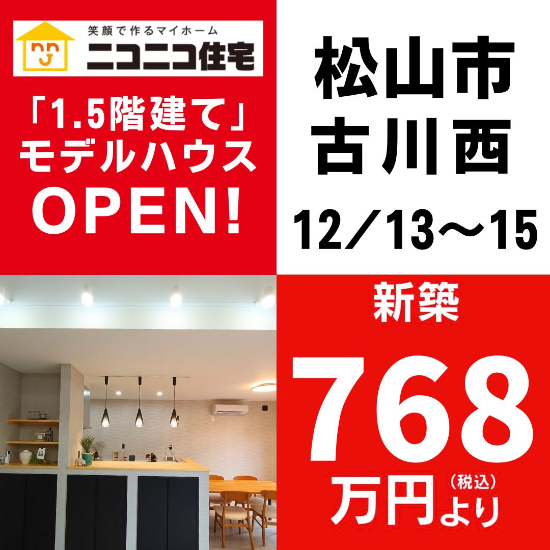 【松山市古川西】「1.5階建て」モデルハウスOPEN!(12/13~15)松山本店 - ニコニコ住宅 愛媛・東広島|松山市・今治市・東広島市のローコスト住宅