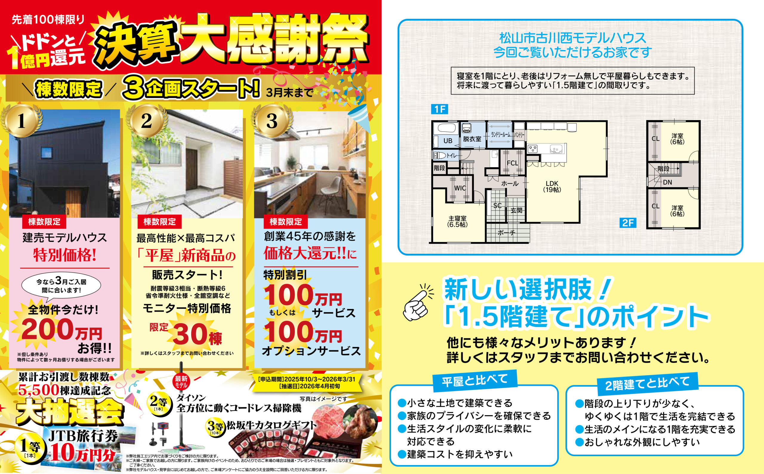 【松山市古川西】「1.5階建て」モデルハウスOPEN!(2/7~9)※松山本店