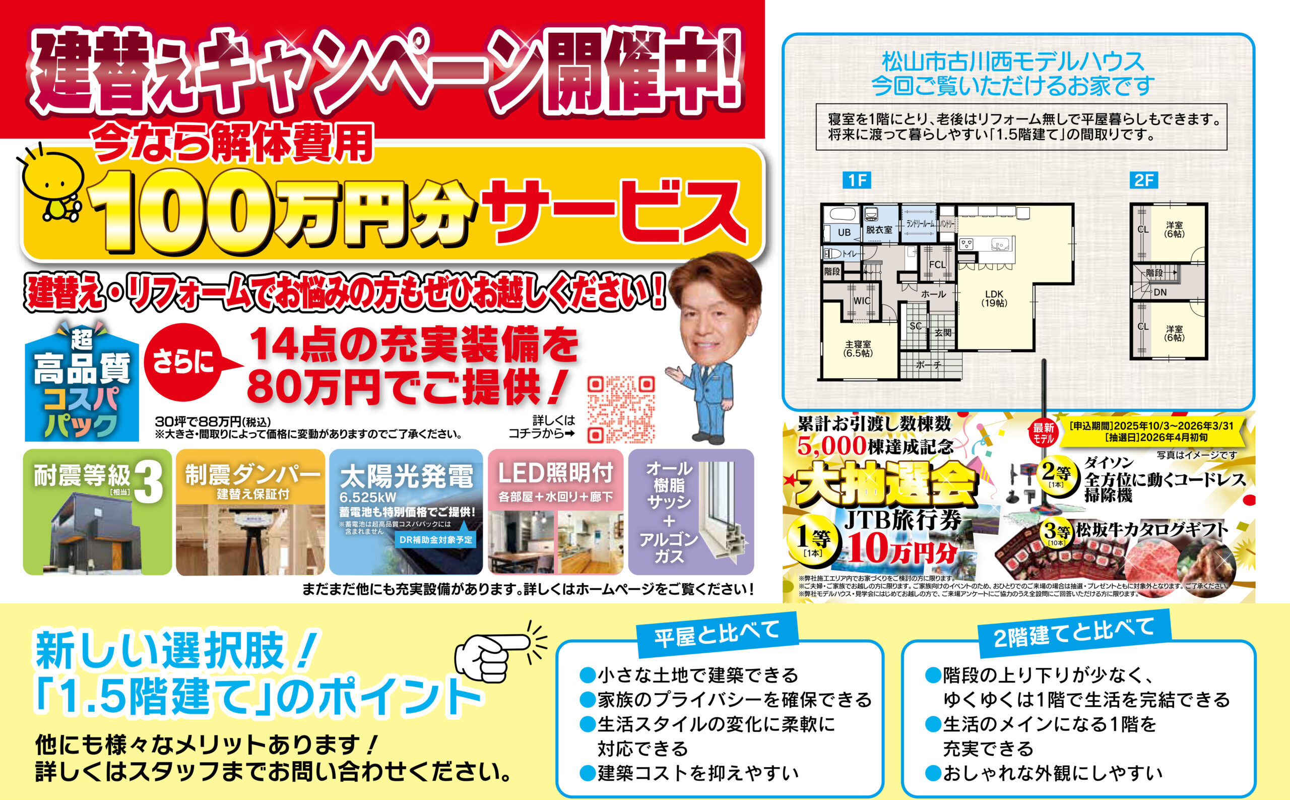 【松山市古川西】「1.5階建て」新モデルハウスOPEN!(11/15~17)松山本店