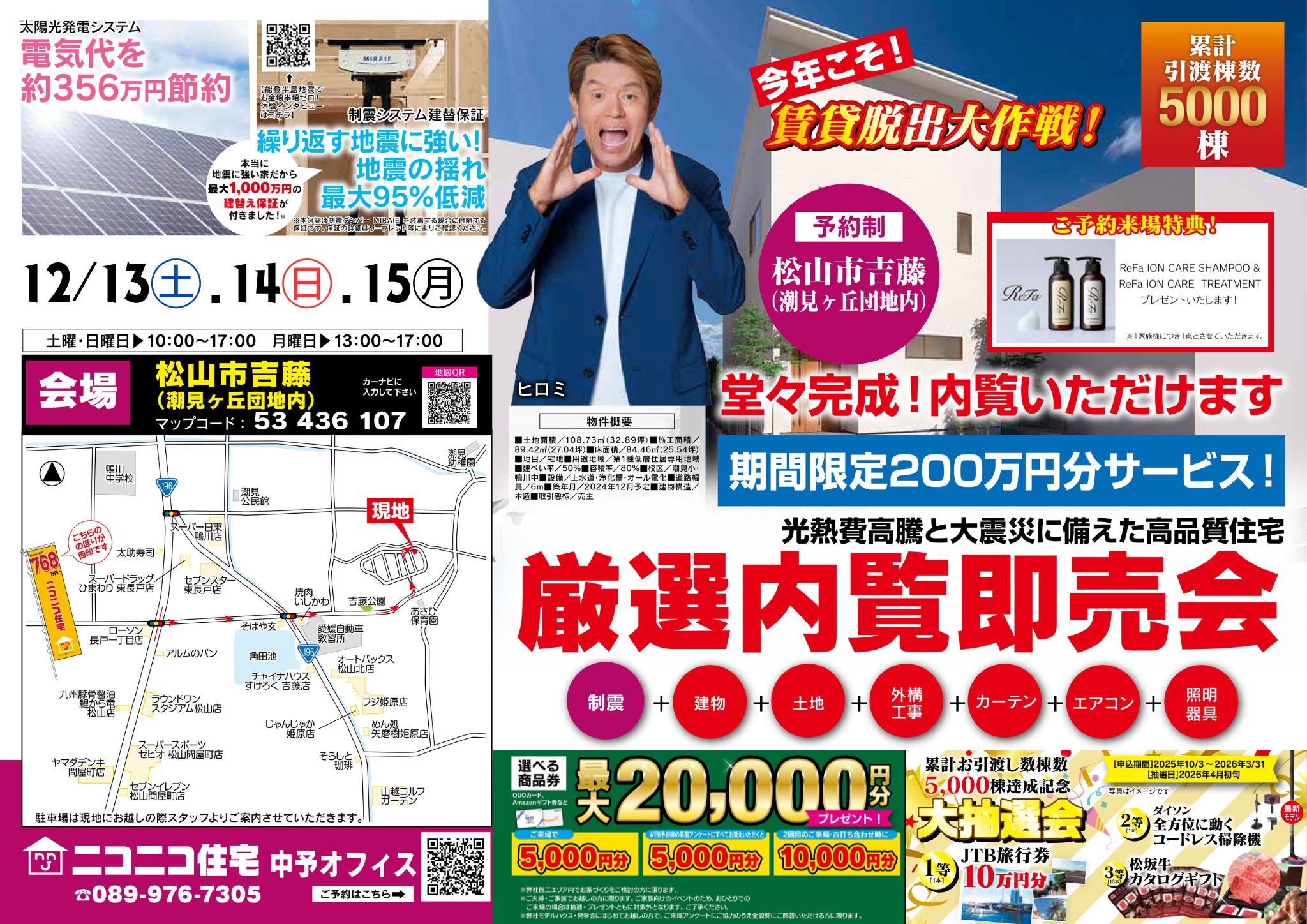 【松山市吉藤(潮見ヶ丘団地内)】モデルハウス内覧即売会を開催!(12/13~15)