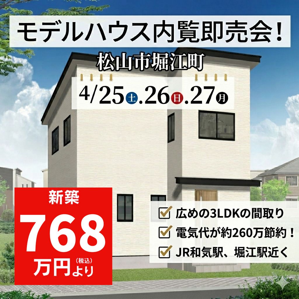 【松山市堀江町】モデルハウス内覧即売会を開催!(4/25~27)