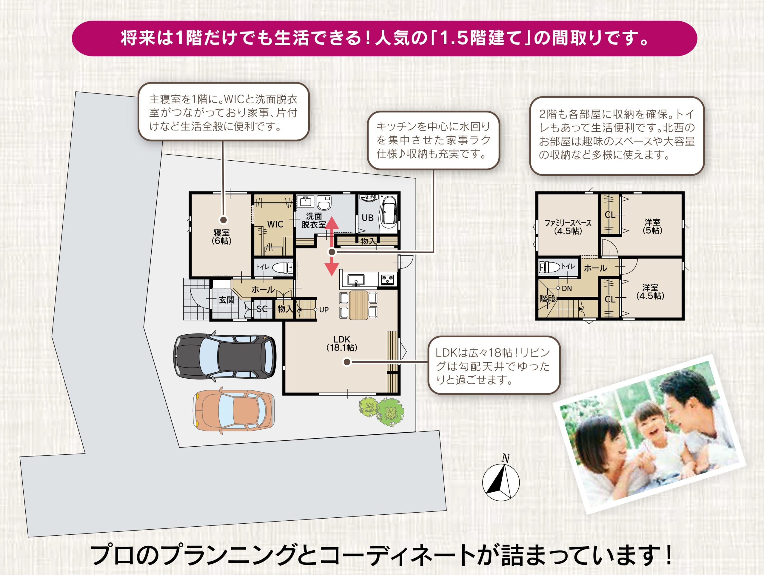 将来は平屋の暮らしができる「1.5階建て」のモデルハウスです。平屋か2階建てかお悩みの方、ぜひご覧ください♪
