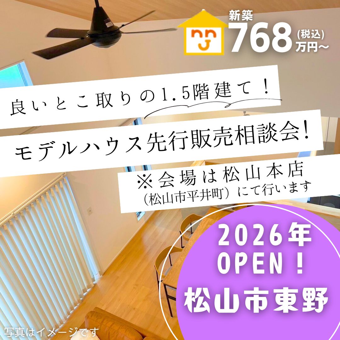 2026年OPEN!【松山市東野】「1.5階建て」新モデルハウス 先行販売相談会!
