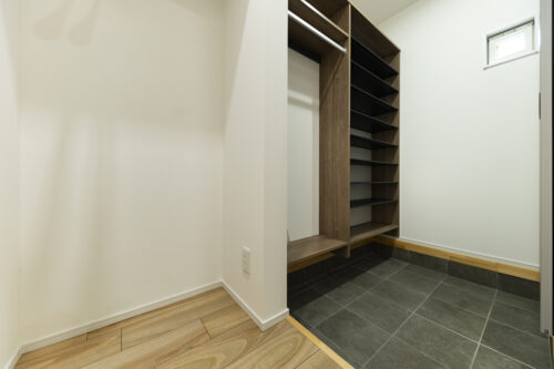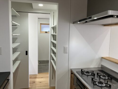 ✅キッチン横のパントリー、玄関のシューズクローク、土間収納と、適材適所に収納が配置されています。