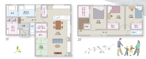 ✅2階には主寝室(6.0帖)と子供部屋(5.0帖×2)の3部屋を確保。